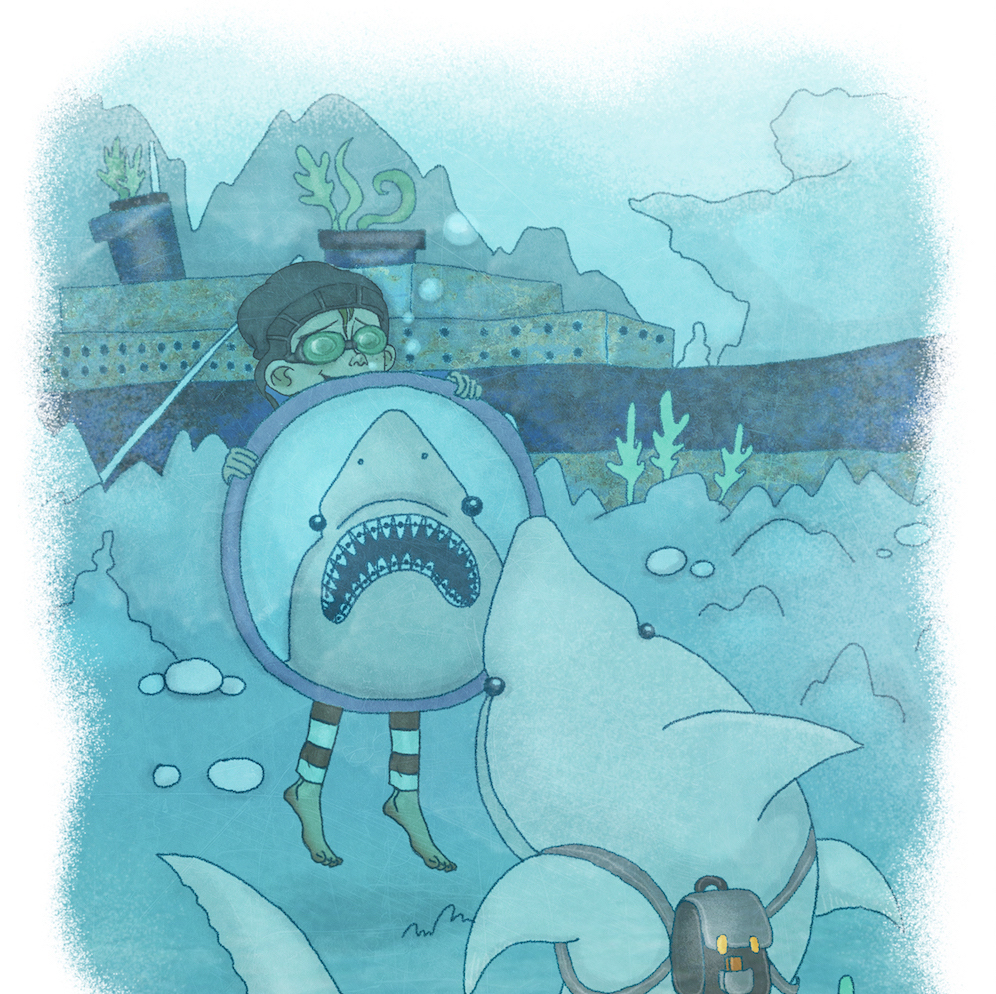 Der står et badekar i din stue – uden bund. Du dykker ned sammen med Vilter og finder en verden af talende dyr, som beder dig om hjælp til at komme af med den grusomme Keld Haj.