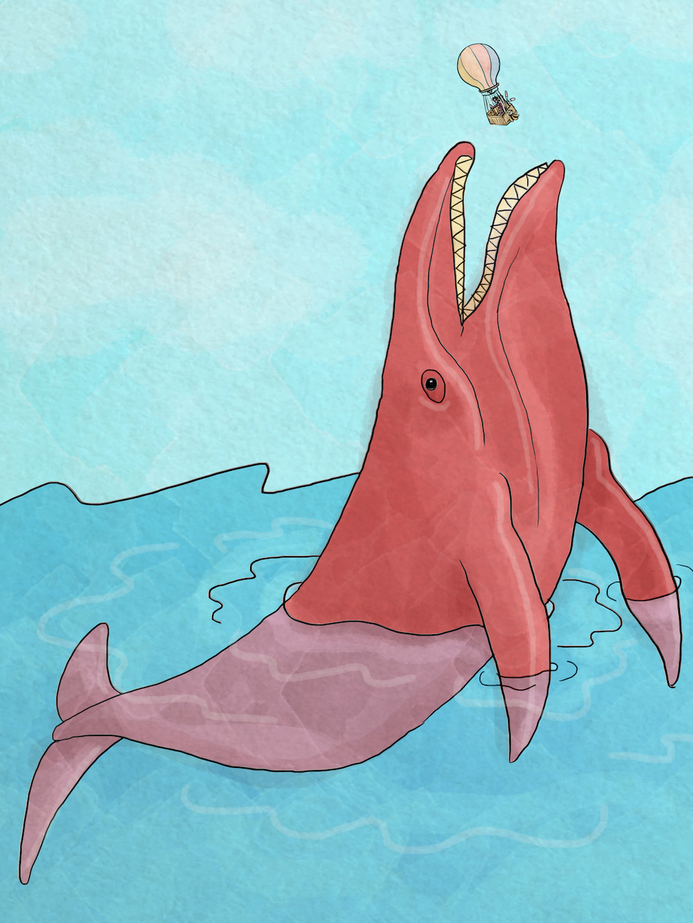 Så nu ligger du her i din seng og drømmer, at du ligger i din seng og venter på det særlige bank fra Vilter på dit vindue. BANK BANK-BANK BANK. Sådan skal det lyde, og så ved du, at han venter udenfor i luftballonen, der kan flyve jer lige ind i hvalens mund.