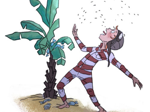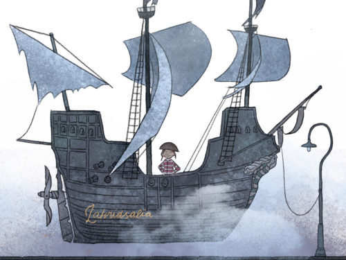 Nu sidder du op i sengen. Du kan ikke lade være med at smile. Det er dejligt at se Vilter så glad. Sidste gang han kom, var han ret sur. Nogen havde stjålet hans sportsvogns-ubåd, sagde han, og han havde ellers parkeret den nede under et stort skib, hvor han troede, ingen ville finde den. Og han havde lænket den til det store anker, men væk var den. Og det var endda hans yndlings sportsvogns-ubåd: den røde med flammer på siden og en motor med 180 delfinkræfter.