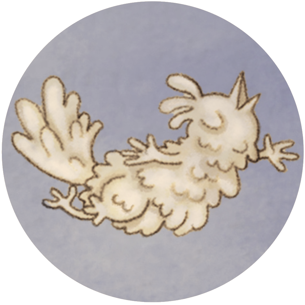 Første gang, jeg så en Skylling, troede jeg, at jeg drømte. De er godt nok nogle sjove typer! Det var under mit første besøg hos [Skykongen Knud]. De arbejder for Knud og laver alle mulige vigtige ting oppe i skyerne. Og de er rigtig gode til at samarbejde – det ved de bare ikke.