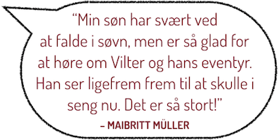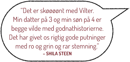 Til sidst i historien falder dit barn i søvn til Vilters egen godnatmelodi – med rigeligt at drømme om.