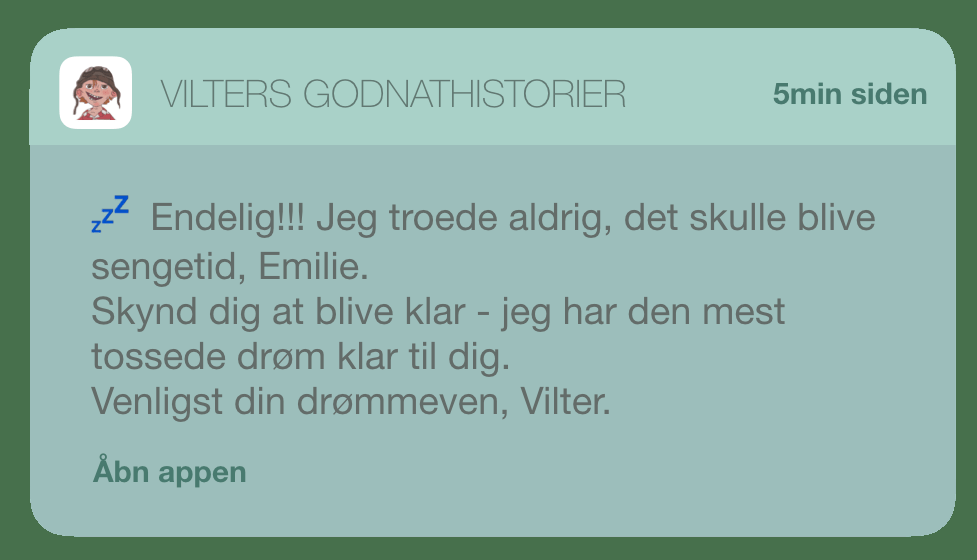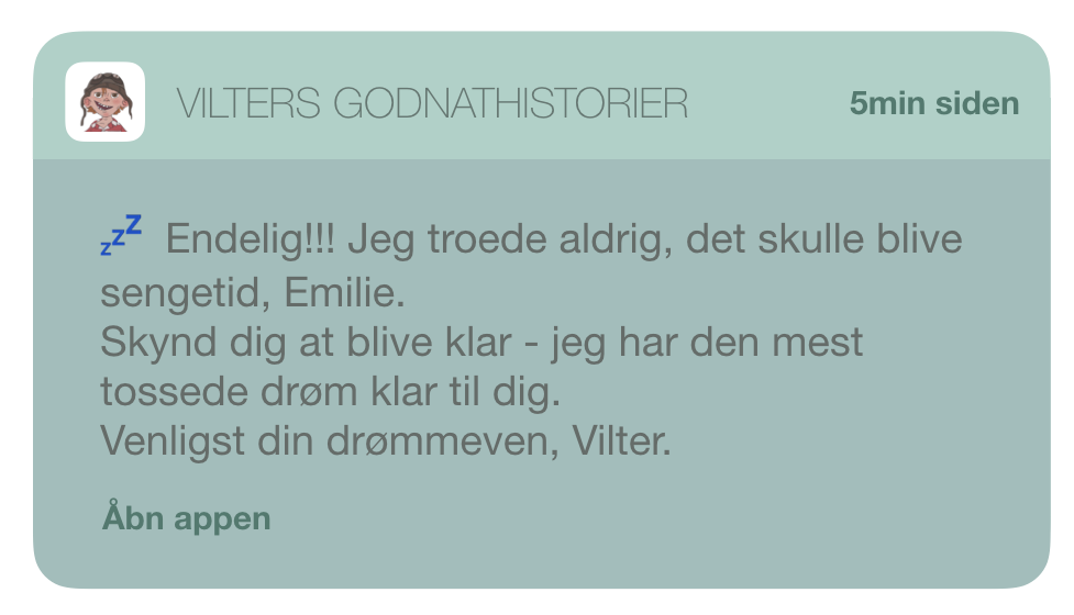 1. Notifikationer ved sengetid – nye beskeder hver dag